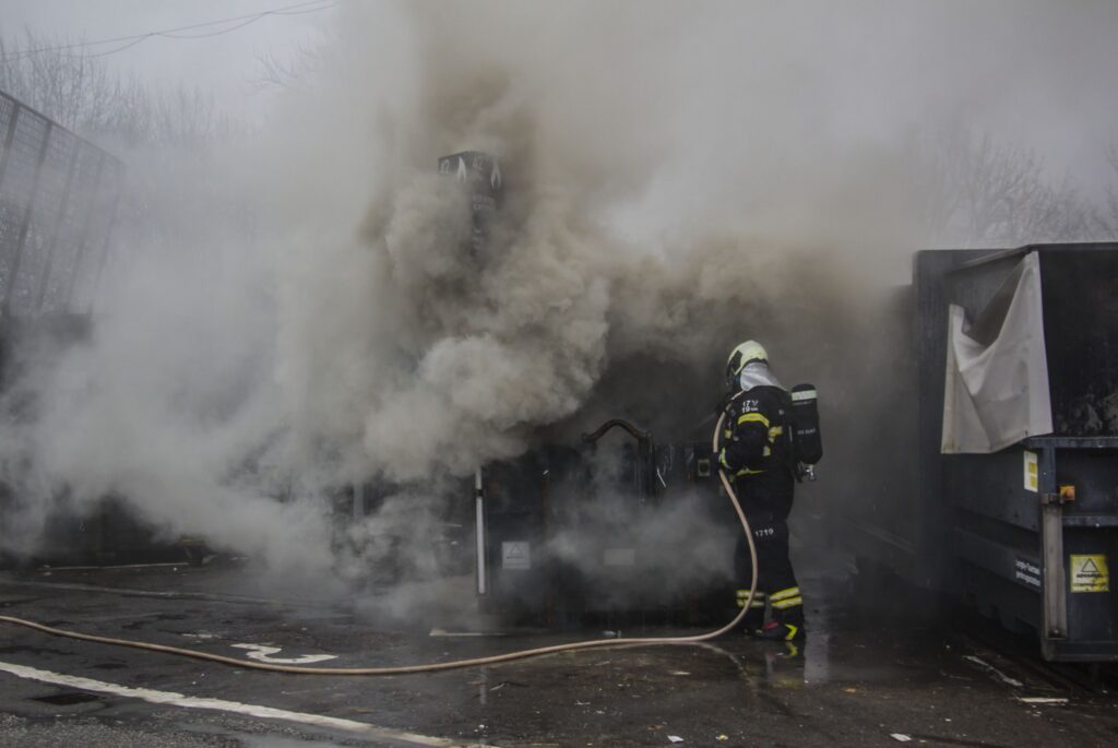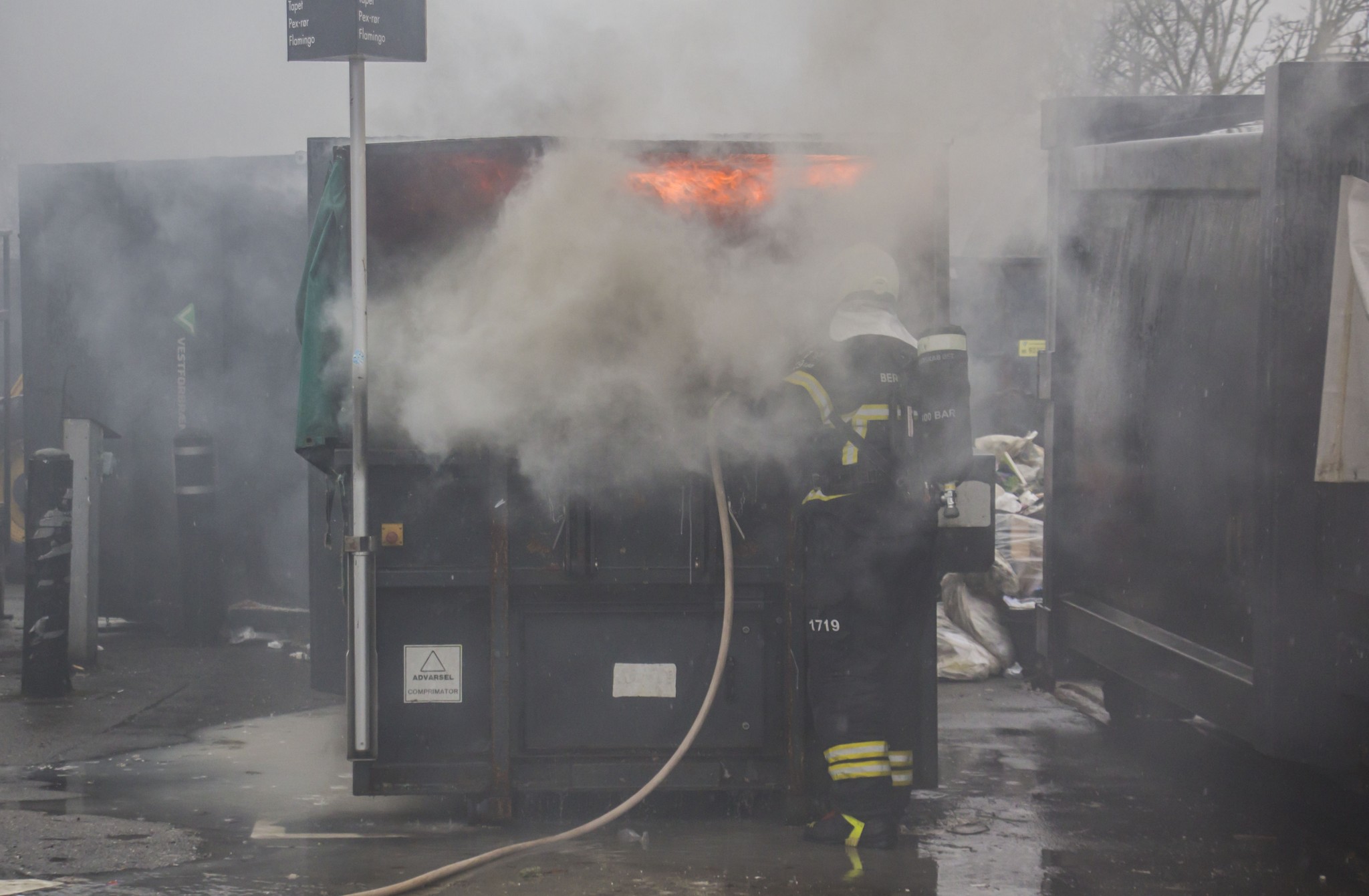 Man måtte derfor tømme alt affaldet fra containeren ud på jorden for at få det slukket. Da branden var slukket, lagde man skum ud over affaldet, inden man igen kunne pakke sammen