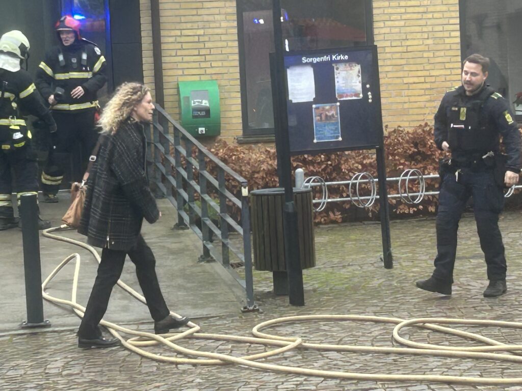 En beboer fra højhusene ringede 112, da hun passerede kirken og så, at der var kraftig røgudvikling i kirkens sidebygning fra anden sal, hvor der er mødelokale.