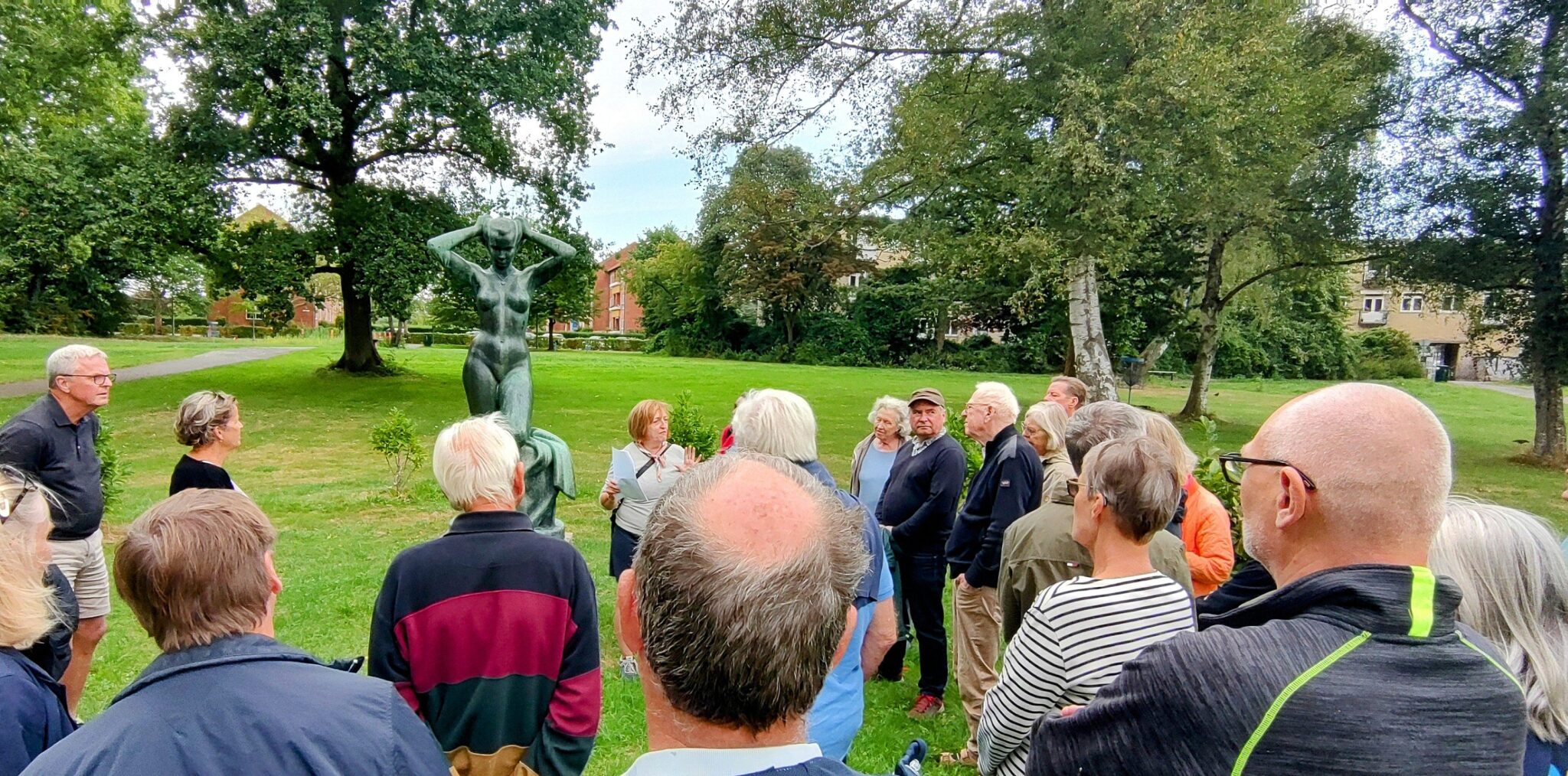 Turen gik videre til Virumparken, hvor man gjorde holdt ved Johannes Hansens smukke statue, ”Stående pige” og videre til Børnehuset Mælkevejen.