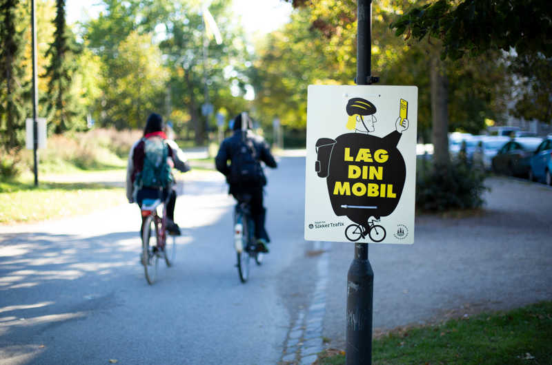 De tre råd til os cyklister er: “Læg din mobil”, “Giv tegn og “Giv plads”.