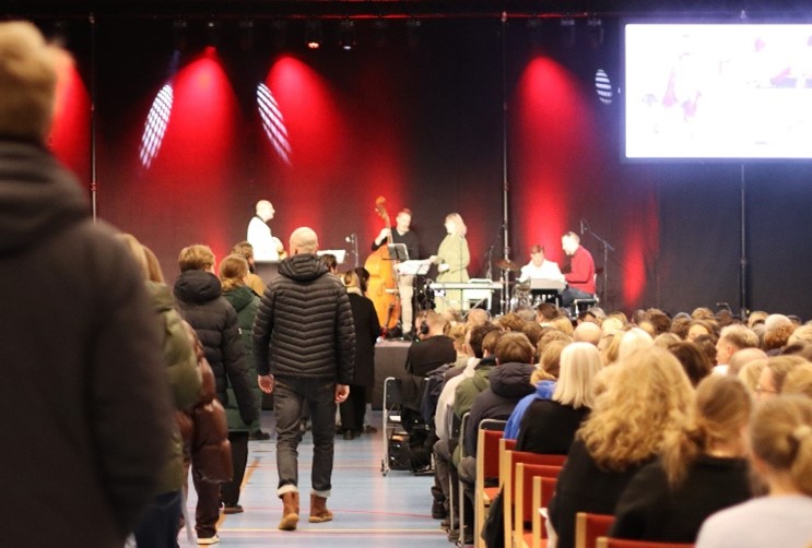 I VG-hallen varmede vores lærerjazzband op med et flot billedloop som bagtæppe af vores husfotograf, Søren Kauffeldt, fra skolens liv i løbet af året. De 1200 stole blev næsten fyldt op, og 19.30 stod rektor Ida Friis og vores elevrådsrepræsentantskab, Laura Wichmand Løber, 3j, og Bertram F. Ameland, 2e, klar til at fortælle om faglighed, fællesskab, medbestemmelse og den almindelige dagligdag på Virum Gymnasium. I hallen fik de besøgende også et indblik i to numre fra årets musical ”Det kommer aldrig til at ske”, skrevet af dramalærer Mie Pittersen. Vores mange elevudvalg fik også lov at præsentere sig på scenen. Afslutningsvis kom vicerektor Andreas Holmsted Olesen på scenen og fortalte om optagelsesproceduren. Ansøgning skal være sendt senest 1. marts. Efterfølgende fortalte vicerektor om aktiviteterne rundt på skolen i løbet af aftenen.