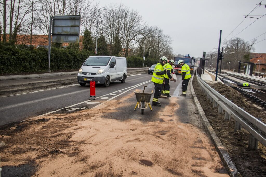 Lørdag formiddag måtte Beredskab Øst, station Lyngby, rykke ud, efter at et køretøj havde spildt dieselolie på kørebanen på Klampenborgvej i Lyngby. Med kattegrus fik de samlet spildet op og kunne derefter forlade stedet igen