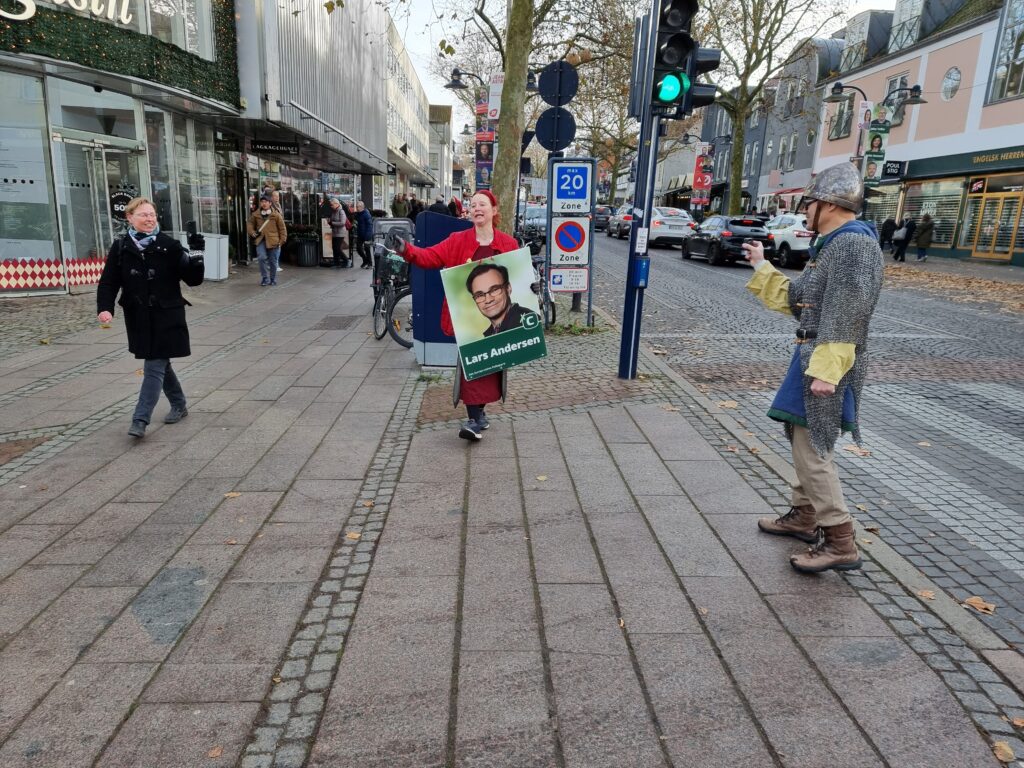 Søndag– var der kampgejst, grin og god stemning, da torvet i Lyngby blev forvandlet til en anderledes politisk slagmark under valgkampens afslutning. I centrum stod de to lokale kandidater: konservative Lars Andersen og SF’s Jeanette Astrup – begge tidligere rollespilskæmpere, hvilket tydeligt kunne mærkes.