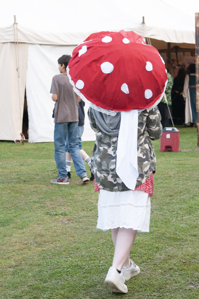 Mange fantasifulde og originale cosplay udklædninger og furries fylder pladsen ind i mellem de rigtig mange spændende boder, hvor man kan investere i alt fra tøj til mjød.