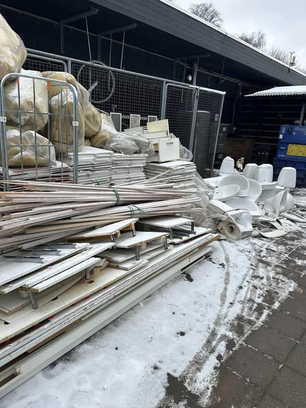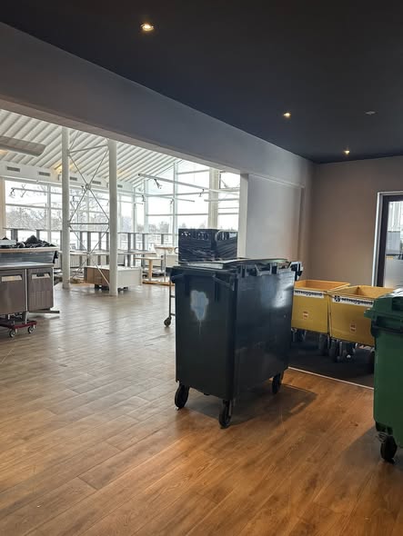 Tømrere er i gang med at sætte nyt og forbedre akustikloft op i selskabslokalerne, malere maler loftet, elektrikere har trukket nye ledninger til den kommende belysning, VVS’ere er i gang med at skifte afløb i køkkenet.
