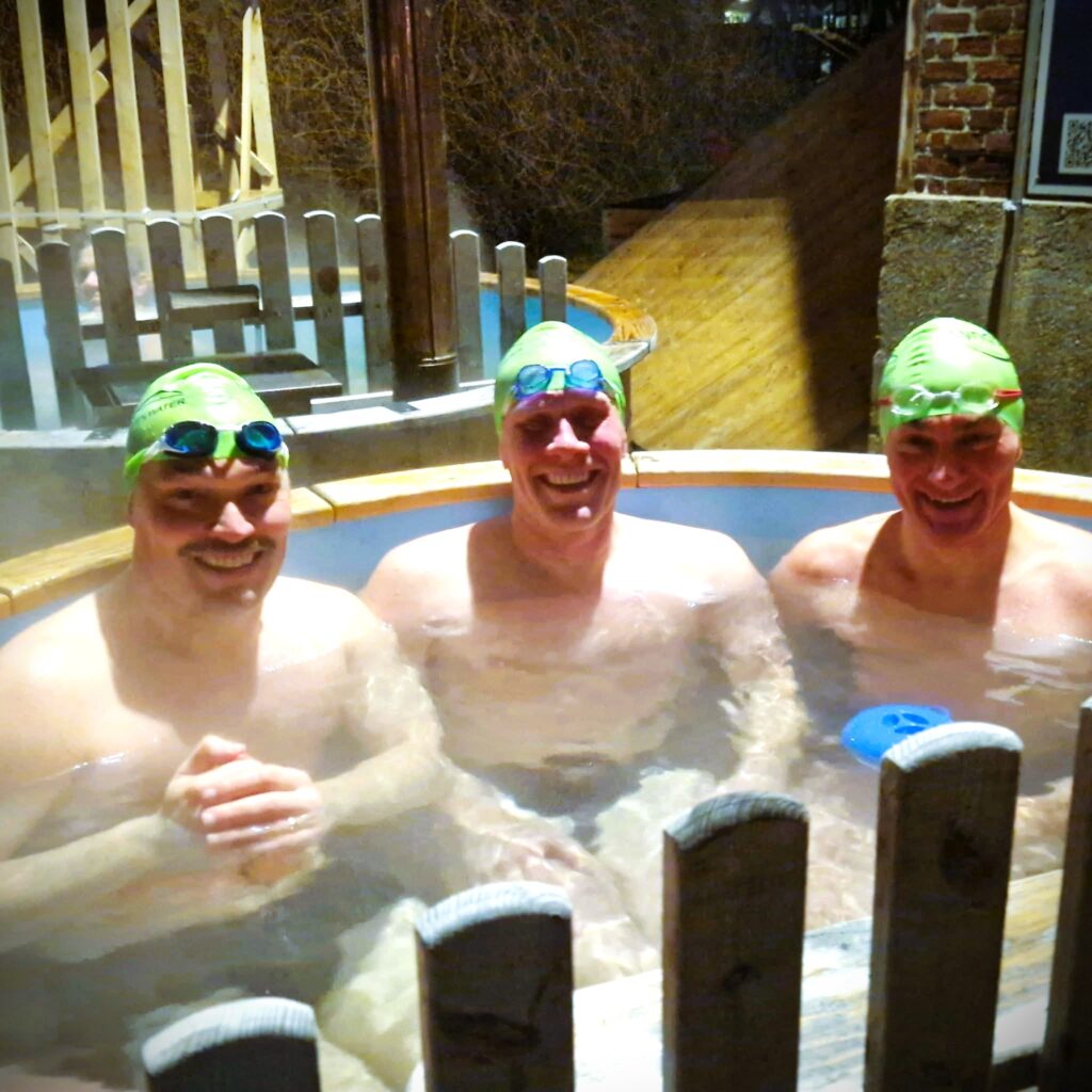 Kroppene er ved at være møre efter mange starter, hvor man veksler mellem meget koldt vand i bassinet og meget varmt i vildmarksbadet og sauna bagefter.