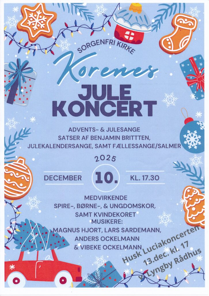 Julestemningen breder sig i Sorgenfri, når kirkens kor traditionen tro inviterer til Korenes Julekoncert – en smuk og stemningsfuld musikalsk oplevelse, hvor både børn og voksne er med til at fejre advent og jul med sang og musik.