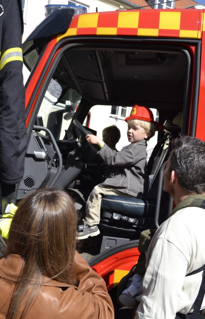Opfinderskolen kiggede forbi, loppemarkedet på Kulturtorvet fristede med loppeguld, og både brandvæsen og hjemmeværn tiltrak nysgerrige blikke – især fra børn, der fik lov at kravle op i brandbilen og tjekke militærkøretøjer og våben ud på nært hold.