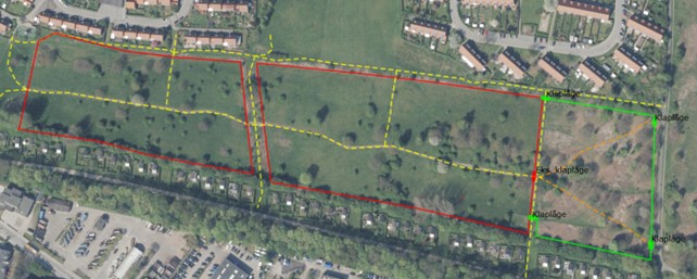 På satellitfotoet kan du se, hvor fårehegnet bliver placeret, og hvor der placeres klaplåger.