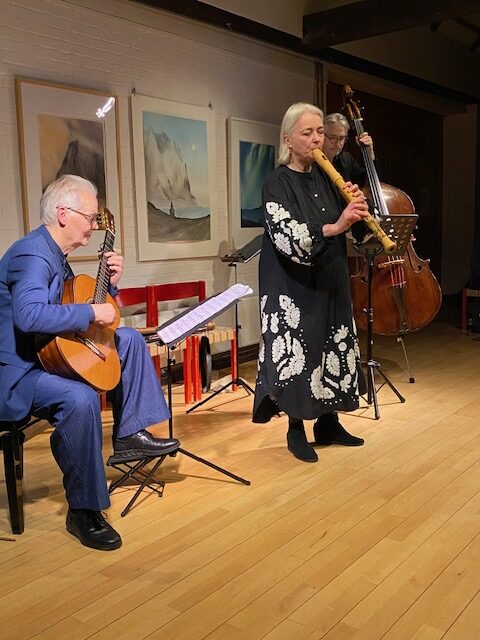 På den tid blev stykkerne spillet på renæssancefløjte, der er noget dybere end nutidens fløjter, hvilket vi fik et godt eksempel på.