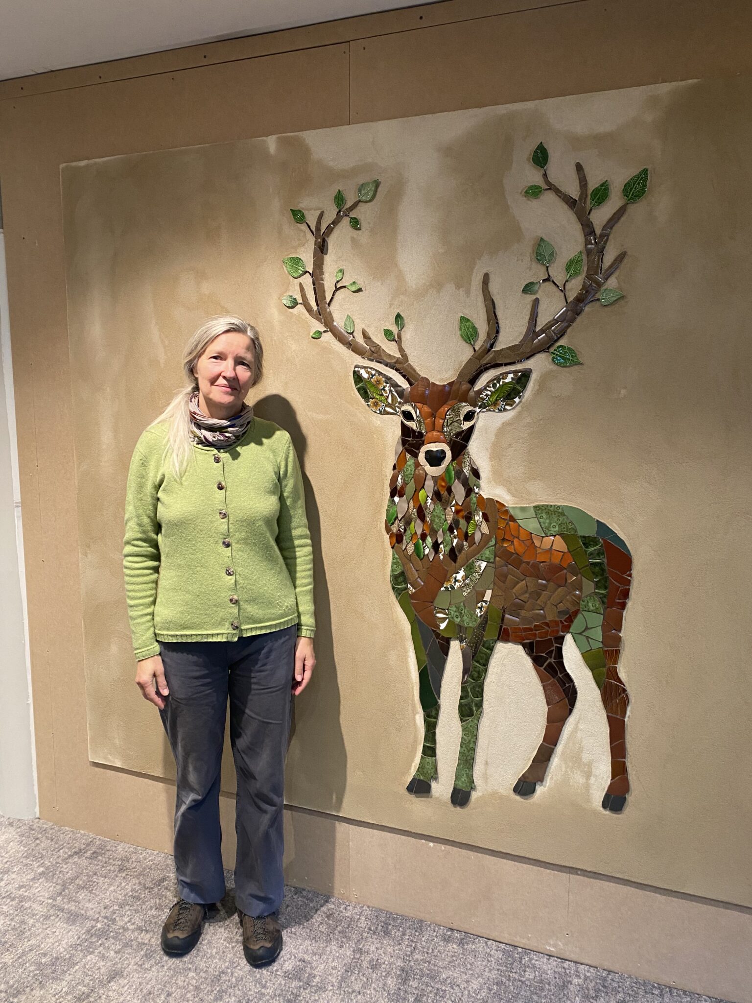 Kunstneren Anne Bjørkmann fra Lyngby har skabt en helt særlig mosaik, som nu pryder receptionen på Comwell Hotel i Rebild Bakker. Opgaven lød på at integrere områdets ikoniske dyreliv i hotellets nyrenoverede interiør – og valget faldt på den majestætiske kronhjort.