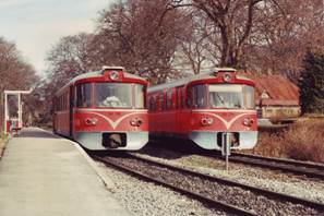 Nærumbanens første tog var damptog, men de blev i løbet af 1920’erne afløst af de såkaldte Triangelmotorvogne og fra 1952 af de sølvfarvede Scandia skinnebusser. Samtidig blev remisen og værkstedsanlægget ved Firskovvej bygget og taget i brug i 1953.