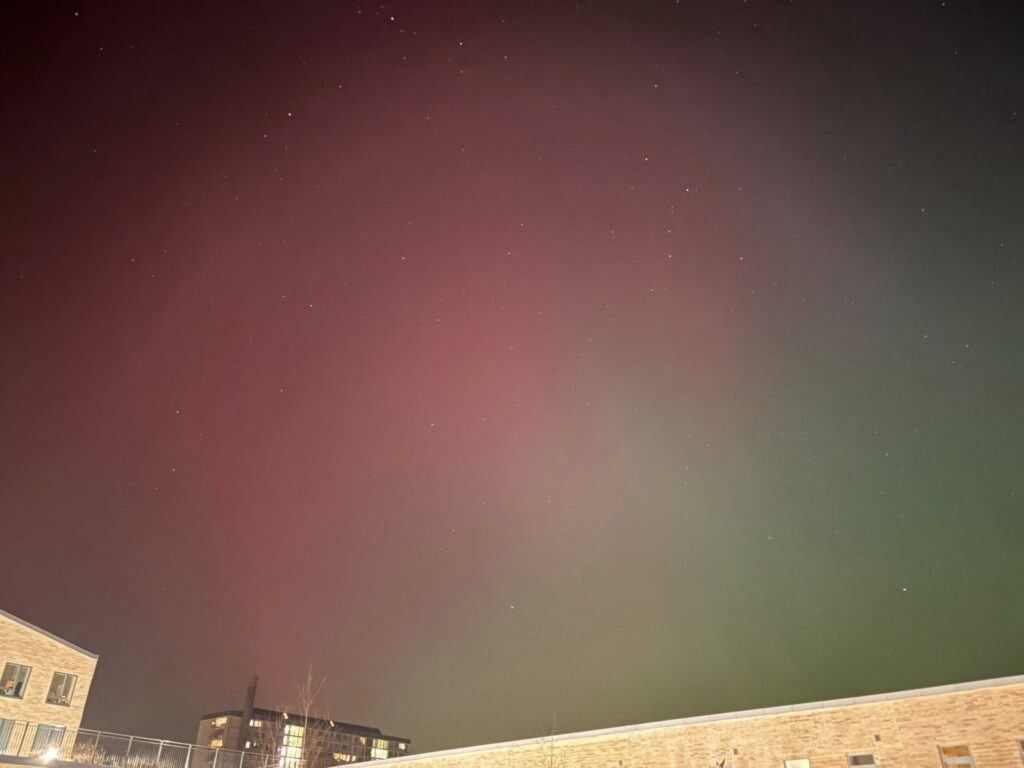 Her bringer vi – med stor tak til fotograferne – et par billeder af nordlys set fra Sorgenfri, Fortunen, Akacievej, Folkeparken og Taarbæk Havn.