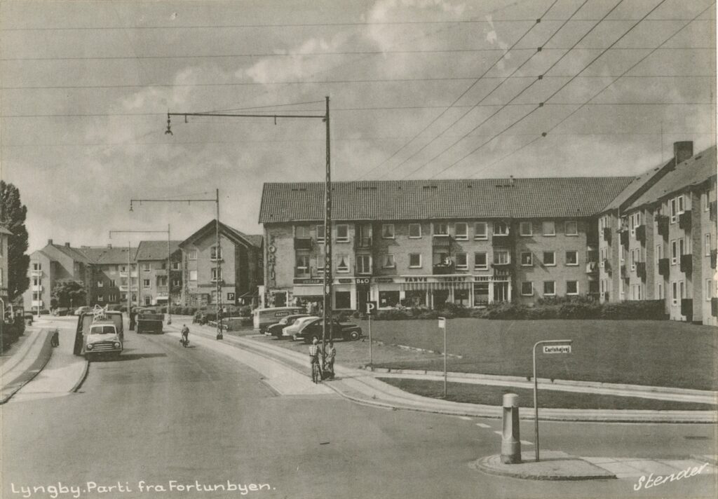 Fortunbyen, Sorgenfrigårdsvej. Til højre Carlshøjvej, 1957-62.