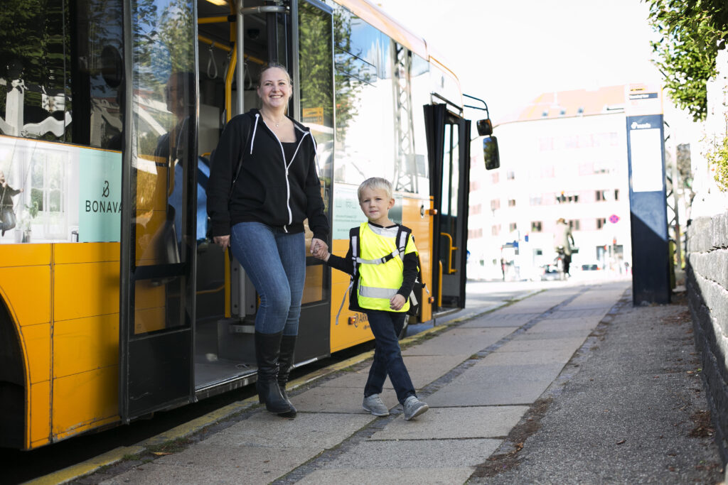 Skal barnet med bus for at komme i skole, så tag turen sammen inden skolestart og tal fx om, hvad man skal holde øje med, når man står af bussen