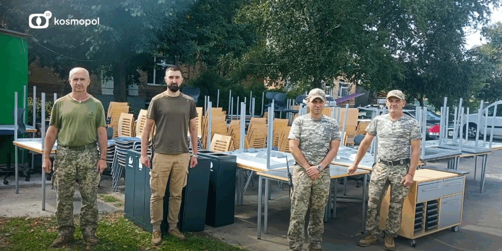 Det var møbler, som var for gode til at smide dem på genbrugspladsen. I stedet har besluttede man at donere dem til Ukraine. For nylig blev de første møbler sendt til Poltava Regionen øst for Kyiv. Her bruges i en militær lejr, hvor soldater skal på skolebænken for at lære at arbejde med de robotter, der henter sårede kolleger ud af krigszonen og ind på hospitalerne.
